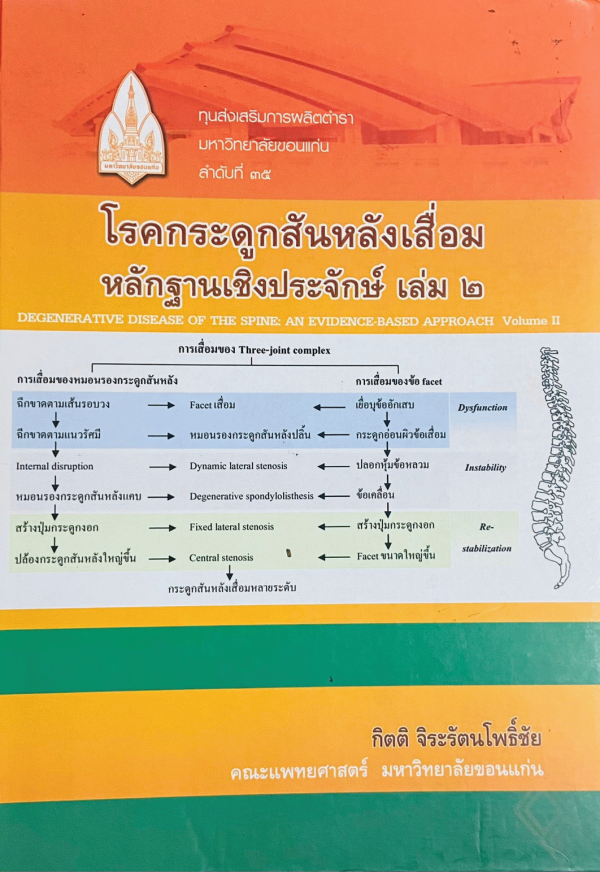 โรคกระดูกสันหลังเสื่อม : หลักฐานเชิงประจักษ์ เล่ม 2 = Degenerative diseases of the spine : an evidence-based approach Volume II กิตติ จิระรัตนโพธิ์ชัย, เสมอเดือน คามวัลย์, ชัช สุมมานนท์