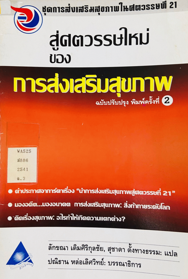สู่ศตวรรษใหม่ของการส่งเสริมสุขภาพ/ แปลโดยลักขณา เติมศิริกุลชัย และสุชาดา ตั้งทางธรรม ; บรรณาธิการโดยปณิธาน หล่อเลิศวิทย์