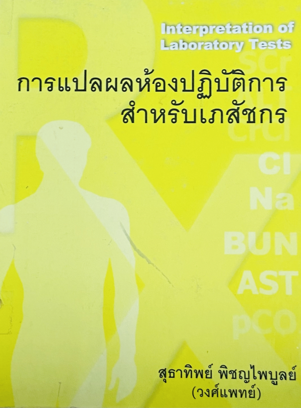 การแปลผลห้องปฏิบัติการสำหรับเภสัชกร = Interpretation of laboratory tests/ สุธาทิพย์ พิชญไพบูลย์(วงศ์แพทย์)