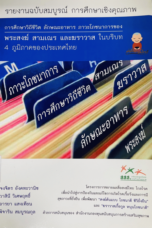 - การศึกษาวิถีชีวิต ลักษณะอาหาร ภาวะโภชนาการ ของพระสงฆ์ สามเณร และฆราวาส : ในบริบท 4 ภูมิภาคประเทศไทย