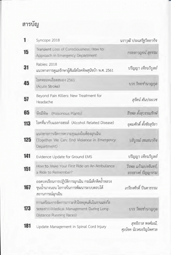TextPublication details: เชียงใหม่: ภาควิชาเวชศาสตร์ฉุกเฉิน คณะแพทยศาสตร์ มหาวิทยาลัยเชียงใหม่, 2561.Description: 200 หน้า. ภาพประกอบ. ตารางISBN: - 9786163983701