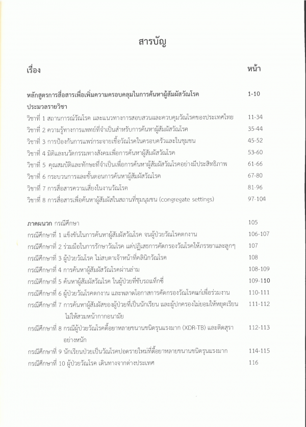 หลักสูตรและประมวลรายวิชา การสื่อสารเพื่อเพิ่มความครอบคลุมในการค้นหาผู้สัมผัสวัณโรค= Communication for enhancing coverage of tuberculosis contact investigation (TB-CI course)