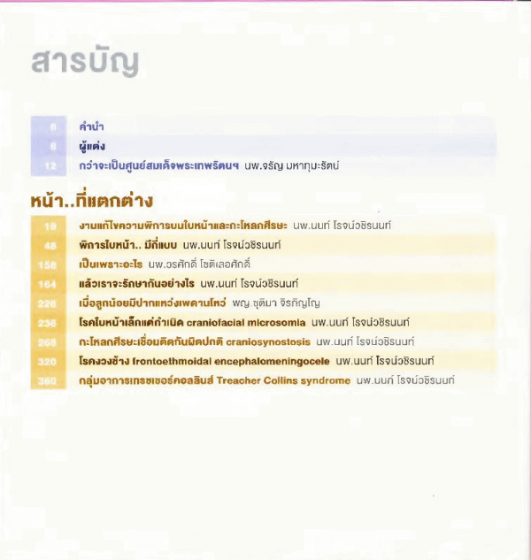 หน้า...ต่าง ที่เปลี่ยนได้:ความรู้เกี่ยวกับความผิดปกติของใบหน้า/ คณะผู้เชี่ยวชาญของศูนย์สมเด็จพระเทพรัตนฯ