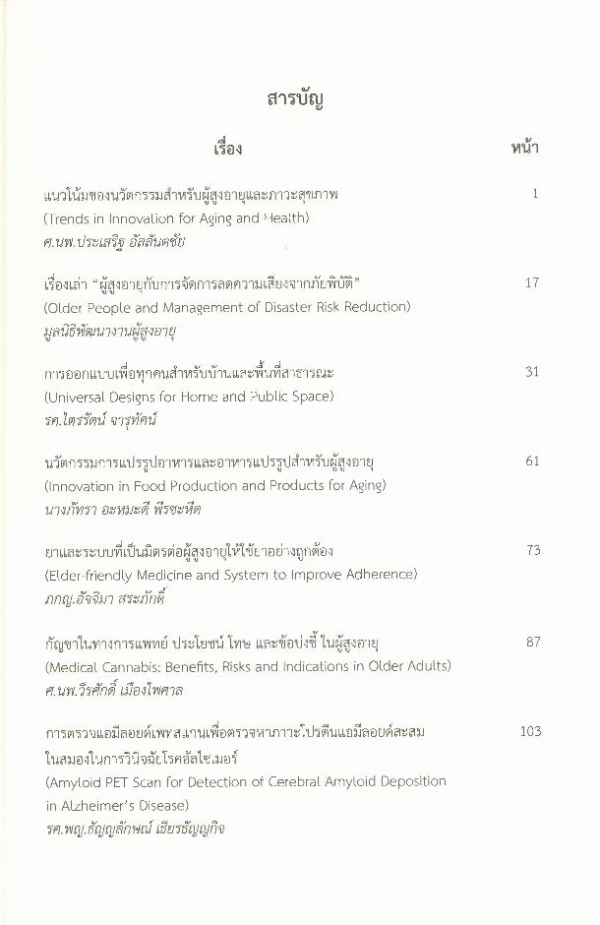 นวัตกรรมทางสุขภาพและสังคมสำหรับประชากรผู้สูงอายุ/ สมาคมพฤฒาวิทยาและเวชศาสตร์ผู้สูงอายุไทย;บรรณาธิการ,วีรศักดิ์ เมืองไพศาล