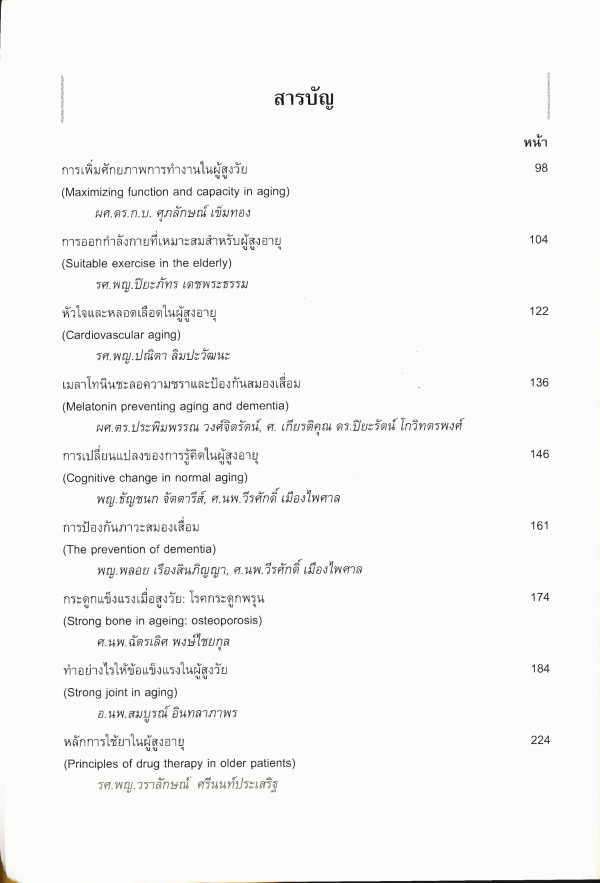 TextPublication details: กรุงเทพฯ: สมาคมพฤฒาวิทยาและเวชศาสตร์ผู้สูงอายุไทย, 2561.Description: 260 หน้าISBN: - 9786169129844
