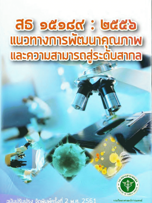 สธ 15189: 2556 แนวทางการพัฒนาคุณภาพและความสามารถสู่ระดับสากล= Guideline for quality and competence development complying to international standard./ สุธน วงษ์ชีรี, บรรณาธิการ.