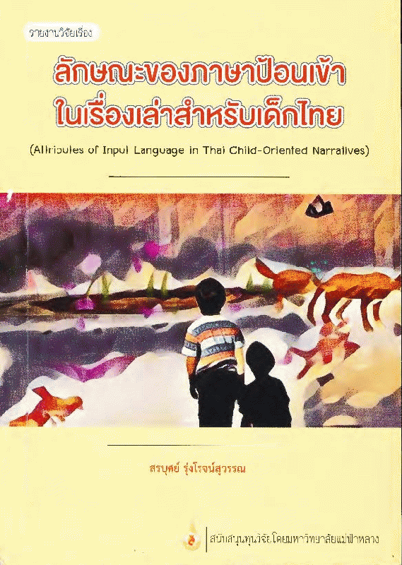 รายงานวิจัยเรื่อง"ลักษณะของภาษาป้อนเข้าในเรื่องเล่าสำหรับเด็กไทย"= Attributes of input language in Thai child-oriented narratives / สรบุศย์ รุ่งโรจน์สุวรรณ.