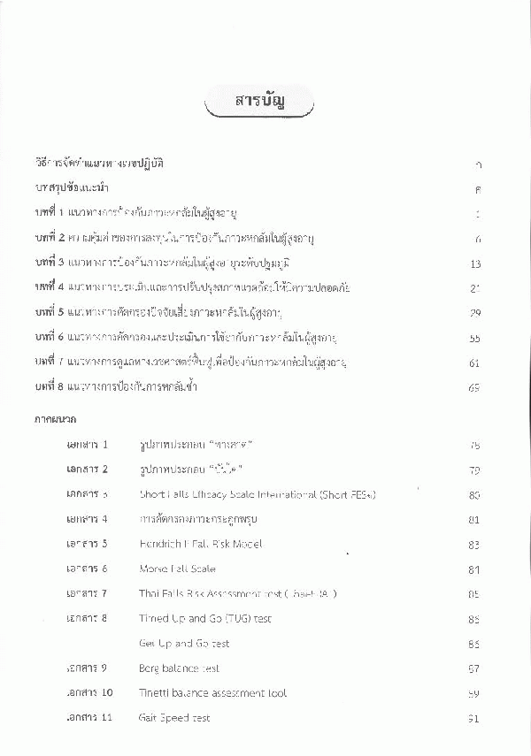 แนวทางเวชปฏิบัติการป้องกันและประเมินภาวะหกล้มในผู้สูงอายุ/ สถาบันเวชศาสตร์สมเด็จพระสังฆราชญาณสังวรเพื่อผู้สูงอายุ กรมการแพทย์. กระทรวงสาธารณสุข