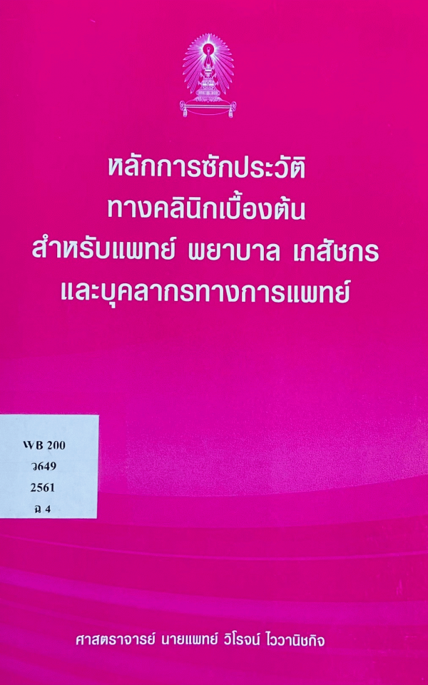 หลักการซักประวัติทางคลินิกเบื้องต้นสำหรับแพทย์ พยาบาล เภสัชกร และบุคลากรทางการแพทย์ / วิโรจน์ ไววานิชกิจ.
