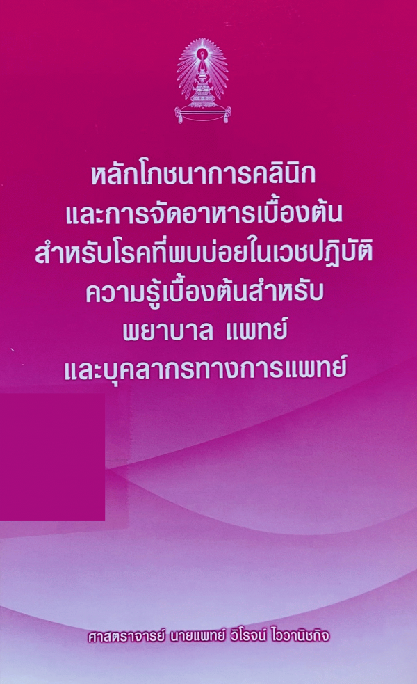 หลักโภชนาการคลินิกและการจัดอาหารเบื้องต้นสำหรับโรคที่พบบ่อยในเวชปฏิบัติความรู้เบื้องต้นสำหรับพยาบาล แพทย์ และบุคลากรทางการแพทย์