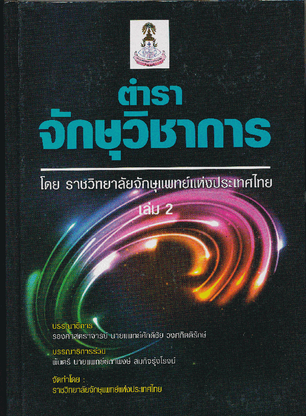 ตำราจักษุวิชาการ เล่ม 2 / ราชวิทยาลัยจักษุแพทย์แห่งประเทศไทย. บรรณาธิการ , ศักดิ์ชัย วงศกิตติรักษ์และ ธนาพงษ์ สมกิจรุ่งโรจน์.