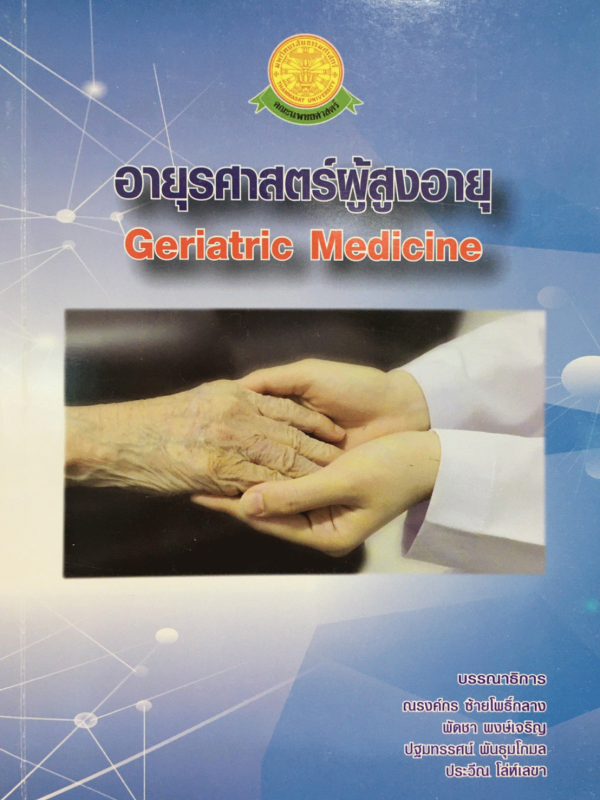 หลักการอายุรศาสตร์ผู้สูงอายุ -- การวินิจฉัยโรคสมองเสื่อม -- โรคหลอดเลือดสมองอุดกั้นในผู้สูงอายุ -- การดูแลผู้ป่วยพาร์กินสันอย่างครอบคลุม -- ภาวะชักในผู้สูงอายุ -- ภาวะปวดเหตุพยาธิสภาพประสาท -- ความดันโลหิตสูงในผู้สูงอายุ -- ภาวะหัวใจเต้นผิดจังหวะชนิดสั่นพลิ้วในผู้สูงอายุ -- โรคเบาหวานในผู้สูงอายุ: ลักษณะทั่วไปและการดูแลรักษา -- ยาลดระดับน้ำตาลในเลือดสำหรับผู้สูงอายุ -- ภาวะไขมันในเส้นเลือดผิดปกติในผู้ป่วยเบาหวาน -- โรคไทรอยด์ในผู้สูงอายุ -- ปอดอักเสบในผู้สูงอายุ -- ภาวะการหายใจล้มเหลวเฉียบพลันในผู้สูงอายุ -- กลุ่มอาการหายใจลำบากเฉียบพลัน -- เครื่องช่วยหายใจที่บ้าน -- การตรวจคัดกรองมะเร็งลำไส้ใหญ่ -- ท้องผูกในผู้สูงอายุ -- โรคตับในผู้สูงอายุ -- นิ่วในระบบทางเดินน้ำดีในผู้สูงอายุ -- การดูแลภาวะโภชนาการที่เหมาะสมในผู้สูงอายุ -- โลหิตจางในผู้สูงวัย -- ภาวะลิ่มเลือดอุดตันหลอดเลือดดำในผู้ป่วยมะเร็ง -- ภาวะโรคไขกระดูกเสื่อมและมะเร็งเม็ดเลือดขาวในผู้สูงอายุ -- ภาวะกล้ามเนื้อพร่อง -- การอักเสบของหลอดเลือดเทมเพอรอลและการอักเสบกล้ามเนื้อเนื้อเยื่อเกี่ยวพัน -- อาการคันในผู้สูงอายุ -- เนื้องอกผิวหนังที่พบบ่อยในผู้สูงอายุ -- ยากับผู้สูงอายุ -- การพยาบาลผู้ป่วยสูงอายุ