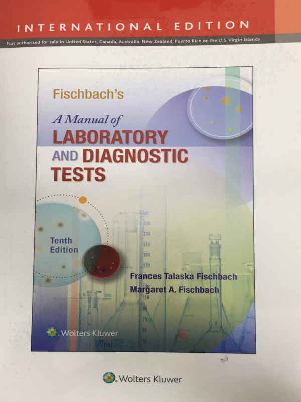 Preceded by A manual of laboratory and diagnostic tests / Frances Talaska Fischback, Marshall Barnett Dunning III. Ninth edition. 2015.