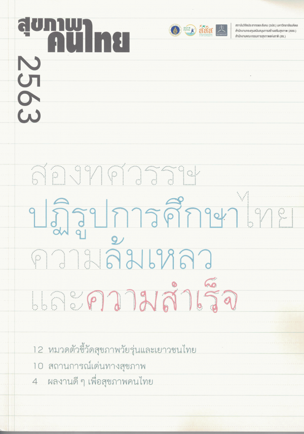 สุขภาพคนไทย 2563 : สองทศวรรษปฏิรูปการศึกษาไทย ความล้มเหลว และความสำเร็จ / สถาบันวิจัยประชากรและสังคม มหาวิทยาลัยมหิดล.