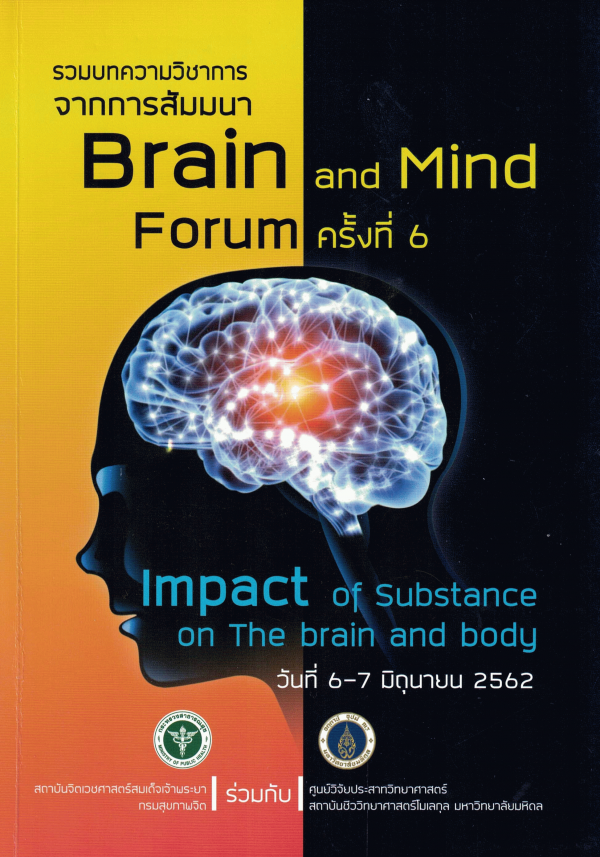 รวมบทความวิชาการจากการสัมมนา Brain and mind forum ครั้งที่ 6:Impact of Substance on The brain and body,วันที่ 6-7 สิงหาคม 2562 / สถาบันจิตเวชศาสตร์สมเด็จเจ้าพระยา ร่วมกับ ศูนย์วิจัยประสาทวิทยาศาสตร์ สถาบันชีววิทยาศาสตร์โมเลกุล มหาวิทยาลัยมหิดล.