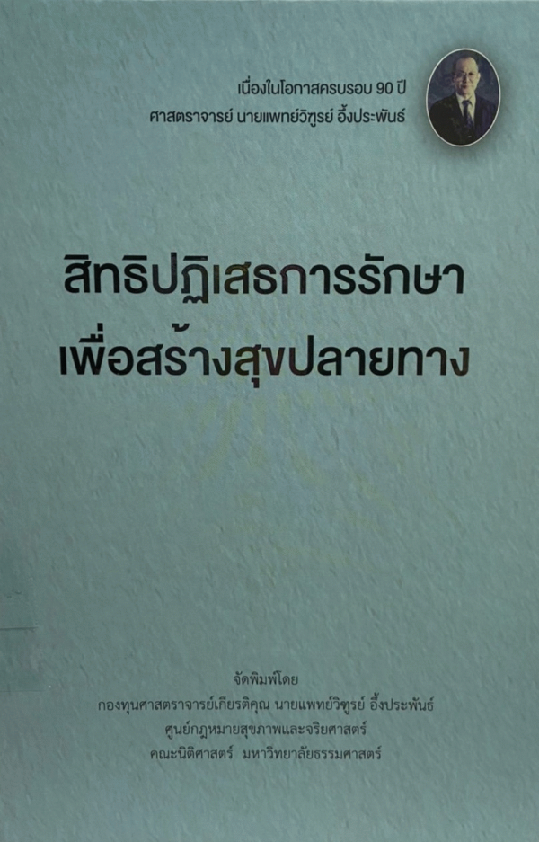 ศาตราจารย์ นพ.วิฑูรย์ อึ้งประพันธ์ ผู้ทรงคุณวิุฒิทางด้านนิติเวชศาสตร์และกฎหมายหารแพทย์ --- สัมภาษณ์พิเศษ เรื่องสิทธิผู้ป่วยเพื่อสร้างสุขปลายทาง --- การแสดงเจตนาขอตายดี ตามวิถีธรรมชาติ ตามมาตรา 12 ของพ.ร.บ. สุขภาพแห่งชาติ พ.ศ.2550 กับการดูแลแบบประคับประคอง --- การดูแลแบบประคับประคอง --- ความเข้าใจเกี่ยวกับภาวะใกล้ตาย --- ความจำเป็นระดับประเทศในการพัมนาหลักสูตรการดูแลผู้ป่วยแบบประคับประคองเพื่อเตรียมความพร้อมในเวชปฏิบัติ --- การดูแลแบบประคับประคอง ที่มีผลต่อการลดค่าใช้จ่ายในการดูแลผู้ป่วยในไอ.ซี.ยู --- ยึดหลักธรรมนำกฎหมายในการทำ Advance care plan --- คณะกรรมการจริยธรรมในโรงพยาบาล --- การใช้มอร์ฟีนดูแลผู้ป่วยแบบประคับประคอง : แนวปฏิบัติและประเด็นกฎหมาย --- สรุปผลการสัมมนา "ไม่ใส่เครื่อง ถอดเครื่องช่วยหายใจ ทำได้เพียงใด ในระยะท้ายของชีวิต" (วันที่ 27 มิถุนายน 2561) --- สรุปผลการสัมมนา สิทธิปฏิเสธการรักษาในระยะท้ายของชีวิตกับปัญหาในทางปฏิบัติ" (วันที่ 16 มีนาคม 2562) --- สรุปผลการสัมมนา "ไขข้อข้องใจ: ตายที่บ้านต้องชันสูตรพลิกศพด้วยหรือ (วันที่ 27 มีนาคม 2564) --- ตายดี วิถีพุทธ คริสต์ อิสลาม --- ถาม-ตอบ การใช้สิทธิตามมาตรา 12 พ.ร.บ. สุขภาพแห่งชาติ พ.ศ. 2550 และการขอตายธรรมชาติ