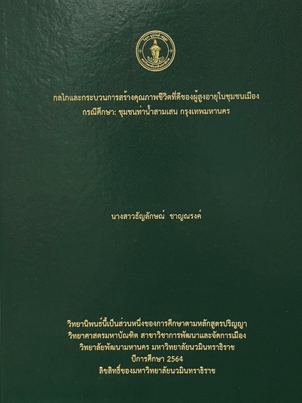 กลไกและกระบวนการสร้างคุณภาพชีวิตที่ดีของผู้สูงอายุในชุมชนเมือง กรณีศึกษา : ชุมชนท่าน้ำสามเสน กรุงเทพมหานคร = MECHANISMS AND PROCESS AFFECT THE QUALITY OF LIFE FOR THE ELDERLY IN URBAN COMMUNITY : A CASE STUDY OF THANAM SAMSEN COMMUNITY BANGKOK