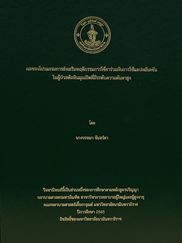 วิทยานิพนธ์นี้เป็นส่วนหนึ่งของการศึกษาตามหลักสูตรปริญญา พยาบาลศาสตรมหาบัณฑิต สาขาวิชาการพยาบาลผู้ใหญ่และผู้สูงอายุ คณะพยาบาลศาสตร์เกื้อการุณย์ มหาวิทยาลัยนวมินทราธิราช ปีการศึกษา 2565