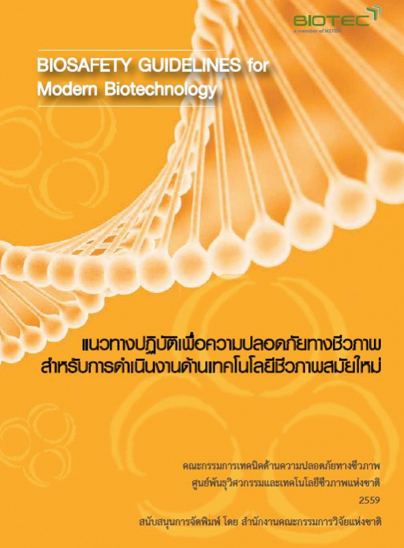 แนวทางปฏิบัติเพื่อความปลอดภัยทางชีวภาพ สำหรับการดำเนินงานด้านเทคโนโลยีชีวภาพสมัยใหม่ = BIOSAFETY GUIDELINES for Modern Biotechnology