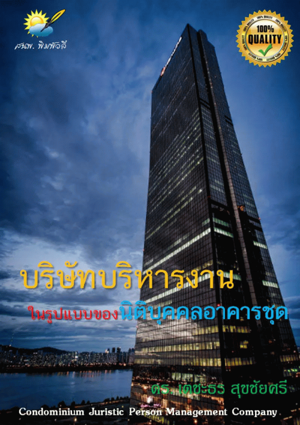 ภายในหนังสือเล่มนี้จึงได้รวบรวมข้อความรู้ต่าง ๆ ใน เรื่องของบริษัทบริหารงานนิติบุคคลอาคารชุดทีได้เก็บรวบรวม ข้อมูลจากประสบการณ์ของผู้เขียนโดยตรง และจะได้นํามาแบ่งปันเพื่อให้ทราบถึงงานบริหารของนิติบุคคลอย่าง ครอบคลุมและครบครันเหมาะสม สําหรับการนําไปเป็นแนวทางในการบริหารจัดการเป็นอย่างยิ่ง