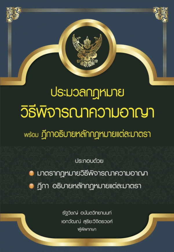 นำเสนอประมวลกฎหมายวิธีพิจารณาความอาญา พร้อมฎีกาอธิบายหลักกฎหมายแต่ละมาตรา โดยมีเนื้อหาประกอบด้วย มาตรากฎหมายวิธีพิจารณาความอาญา ฎีกา อธิบายหลักกฎหมายแต่ละมาตรา ในเล่มได้ให้เนื้อหาอย่างละเอียด ถ่ายทอดอย่างเป็นลำดับขั้นตอน เรียบเรียงไว้เป็นหมวดหมู่ชัดเจน เข้าใจง่าย เหมาะสำหรับผู้ที่กำลังศึกษาวิชากฎหมาย และผู้ที่ต้องเกี่ยวข้องกับกฎหมาย