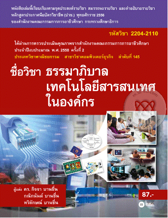 ธรรมาภิบาลเทคโนโลยีสารสนเทศในองค์กร (รหัสวิชา 2204-2110)"" เล่มนี้ มีเนื้อหาวิชาที่ตรงตามหลักสูตรประกาศนียบัตรวิชาชีพ พุทธศึกราช 2556 ของสำนักงานคณะกรรมการการอาชีวศึกษา เริ่มตั้งแต่ทำความรู้จักกับความรู้เกี่ยวกับธรรมาภิบาล ความหมายและความสำคัญของเทคโนโลยีสารสนเทศ ทรัพย์สินทางปัญญา จรรยาบรรณเทคโนโลยีสารสนเทศ มาตรฐานระบบบริหารความมั่นคงปลอดภัยสารสนเทศ ISO 27001 การรักษาความปลอดภัยของข้อมูลและระบบสารสนเทศ ความรู้เกี่ยวกับลิขสิทธิ์อาชญากรรมทางคอมพิวเตอร์ อธิบายเนื้อหาโดยละเอียดเป็นลำดับขั้นตอน พร้อมตัวอย่างหลากหลาย เข้าใจง่าย นอกจากนี้ยังมีแบบทดสอบท้ายบทสำหรับทบทวนความรู้ความเข้าใจอีกด้วย