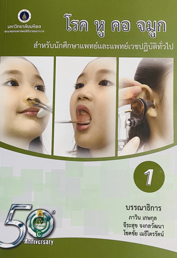 50 ปีของการจัดตั้งภาควิชาโสต นาสิก ลาริงซ์วิทยา คณะแพทยศาสตร์ศิริราชพยาบาล "หนังสือโรคหู คอ จมูก สำหรับนักศึกษาแพทย์และแพทย์เวชปฏิบัติทั่วไป"