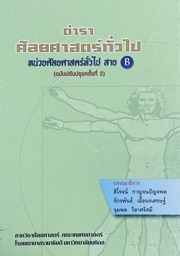ตำราศัลยศาสตร์ทั่วไป : หน่วยศัลยศาสตร์ทั่วไปสาย B บรรณาธิการโดย สิโรจน์ กาญจนปัญจพล, จักรพันธ์ เอื้อนรเศรษฐ และจุมพล วิลาศรัศมี